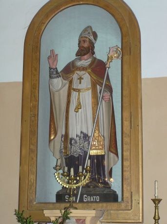 Il 17 giugno 1636 l'allora esistente cappella di San Grato veniva eretta in parrocchiale e, più tardi, nel 1772 veniva ricostruita nelle forme attuali. Conserva un pregevole altare ligneo, trasferito da un istituto religioso di Cuorgnè a Son Colombano per evitare che divenisse preda bellica durante l'occupazione napoleonica.